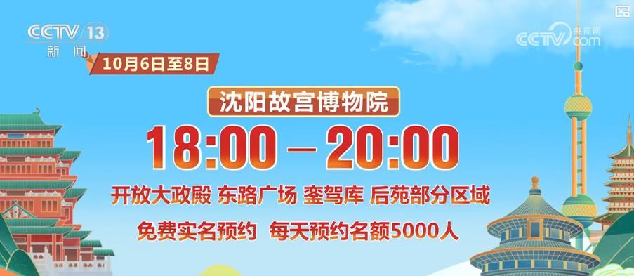 为了方便观众参观,这个国庆中秋假期后半程,辽宁多个文博场馆延时开放。10月6日起到8日,沈阳故宫博物院举办夜游活动,每天18时到20时,沈阳故宫的大政殿、东路广场、銮驾库、后苑部分区域向观众开放,活动采取免费实名预约,每天预约名额为5000人。